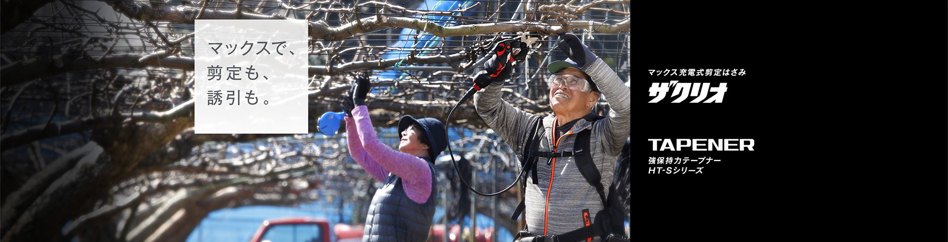 近年では、これまでのノウハウを活かして、圧倒的な軽とじ・軽量化を実現した「楽らくテープナー HT-Rシリーズ」、枝の反発が強い箇所や太い枝の結束にも対応した「強保持力テープナーシリーズ」など幅広いラインアップを展開しています。私たちはこれからも、ユーザーの作業効率化・省力化につながる製品づくりを実現していきます。